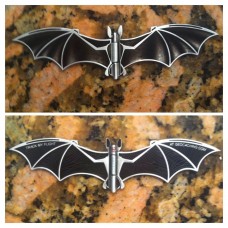 Hinged bat geocoin. Size unfolded 11 cm x 3 cm